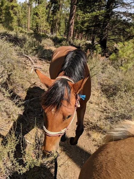Hello, my name is Kiana. I was gathered as a youngster from the Fifteen Mile HMA in Wyoming. Somehow I ended up at the Sunnyside Feedlot in 2016. Iām so grateful that Mustangs to the Rescue picked me up and gave me another opportunity to find a partner who truly gets me! I love sharing yummy bananas with my best buddy Zayna!
